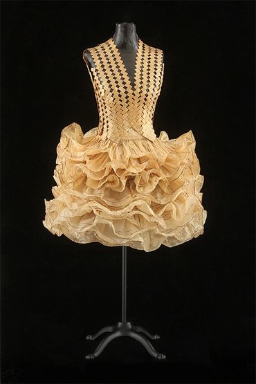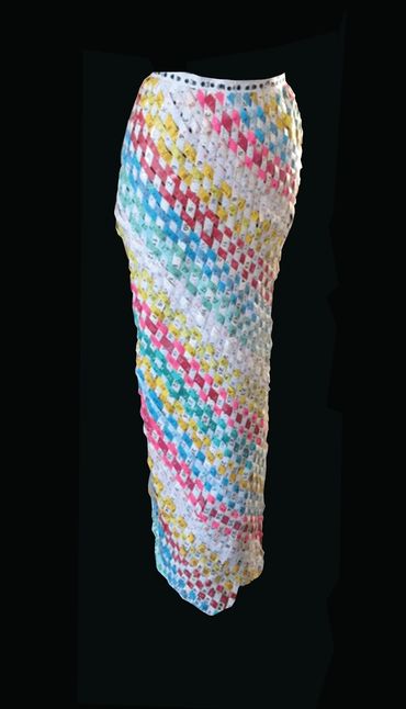 The Series: Dressed Form begins with stripping the reclaimed forms to its bare bones of compressed cardboard, rusted screws, and metal stays. The skeletal frames are transformed into elegant sartorial figures that are forever clothed in tissue. These clothed forms explore the nature of fragility and impermanent of paper and the elegance of the dress. These forms clothed in tissue paper explore the notion of the fragility and impermanent nature of paper. Tissue paper while fragile and translucent holds a quality of strength and permanence in duality.
